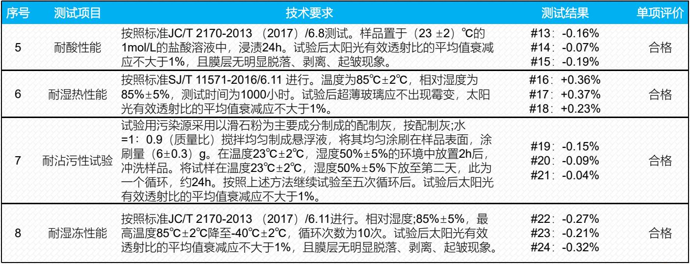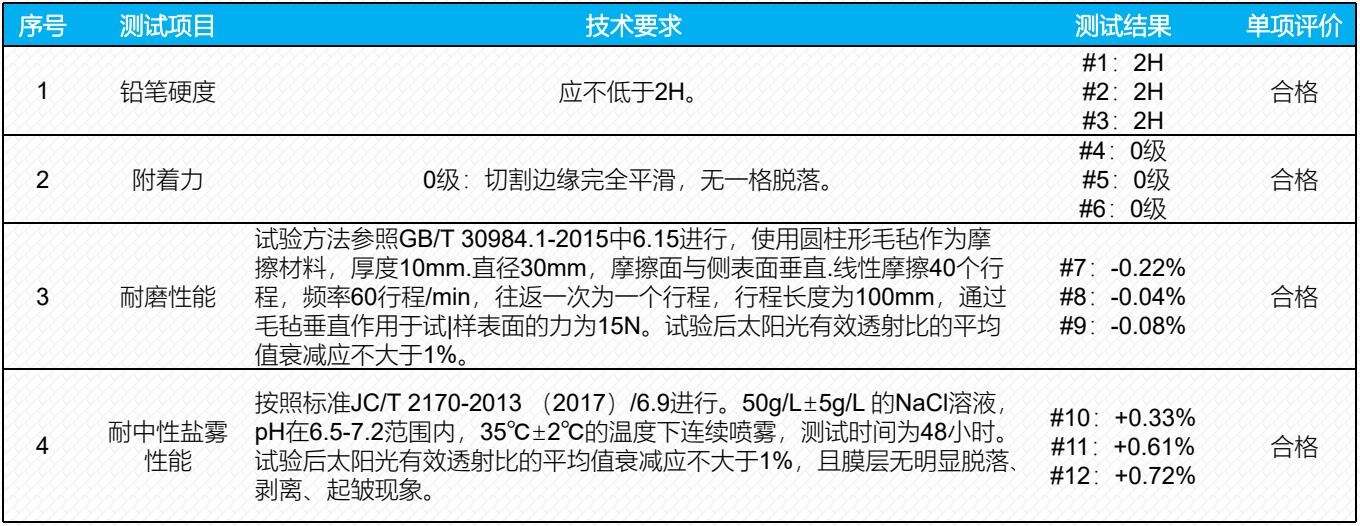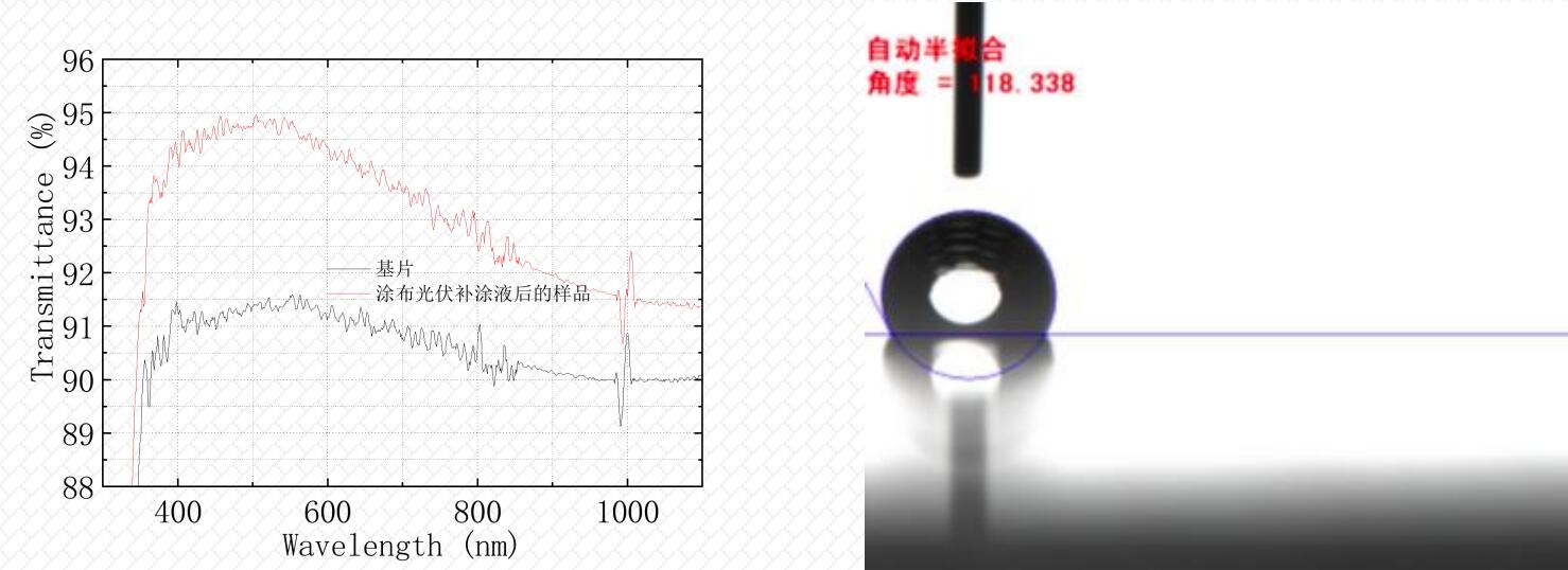 膜层表面疏水,砂尘试验后抗积灰效果明显。
